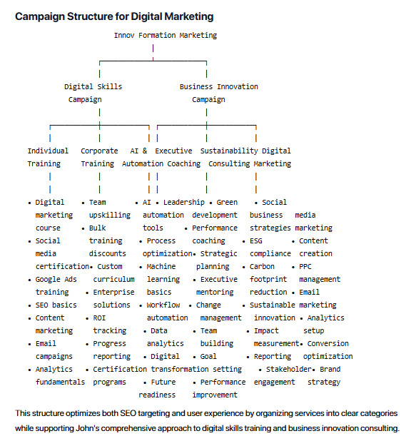 - Using clear H1 and H2 tags (e.g., “Empower Your Future with Digital Skills Training at Innov Formation”)